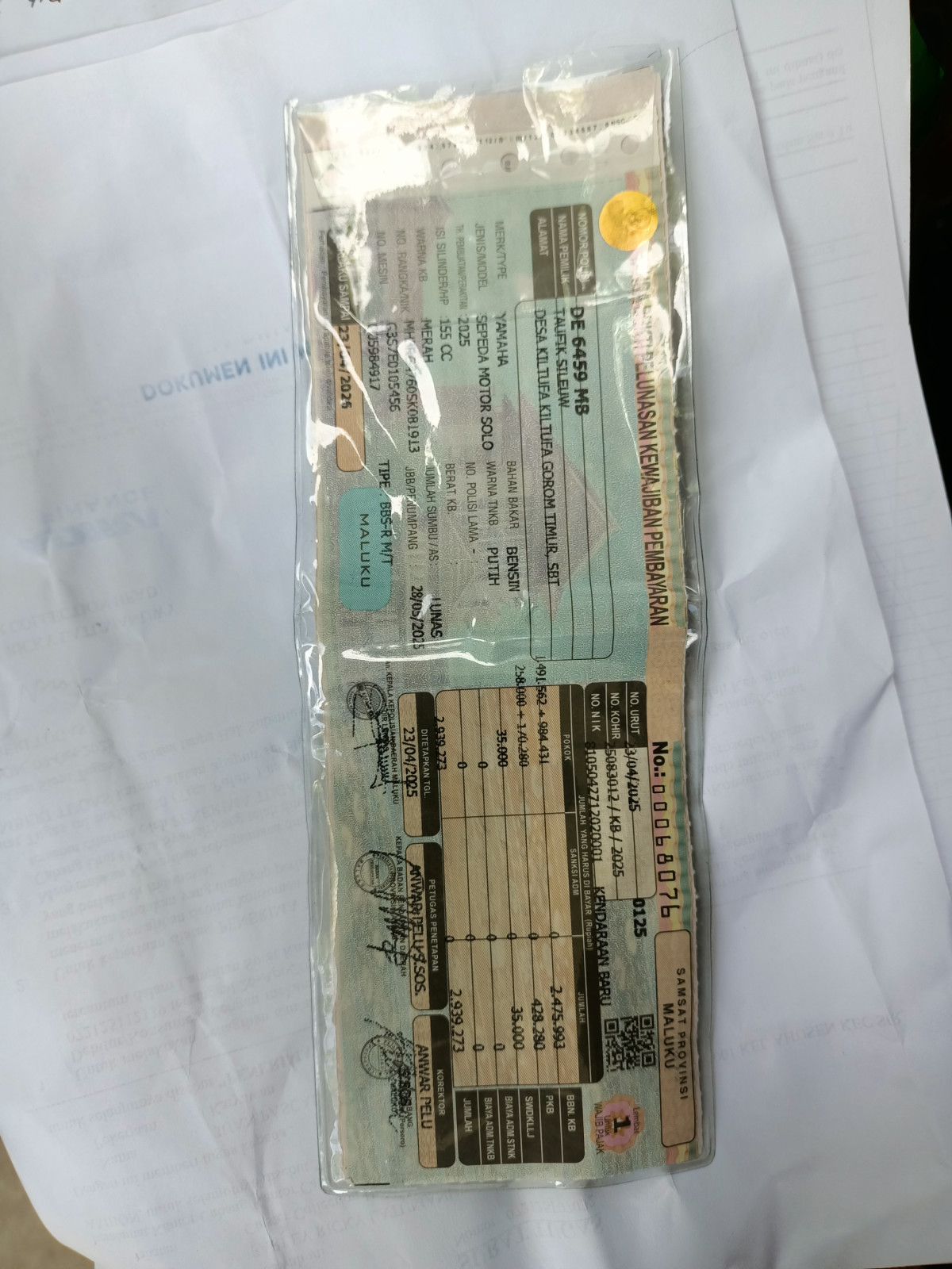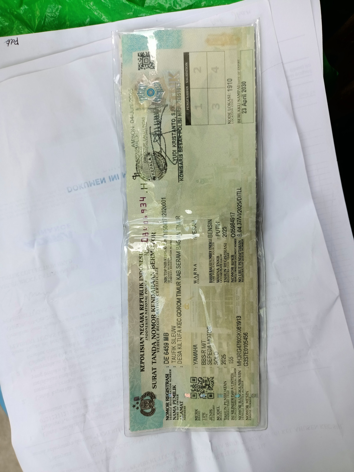 No. Polisi | : | DE 6459 MB |