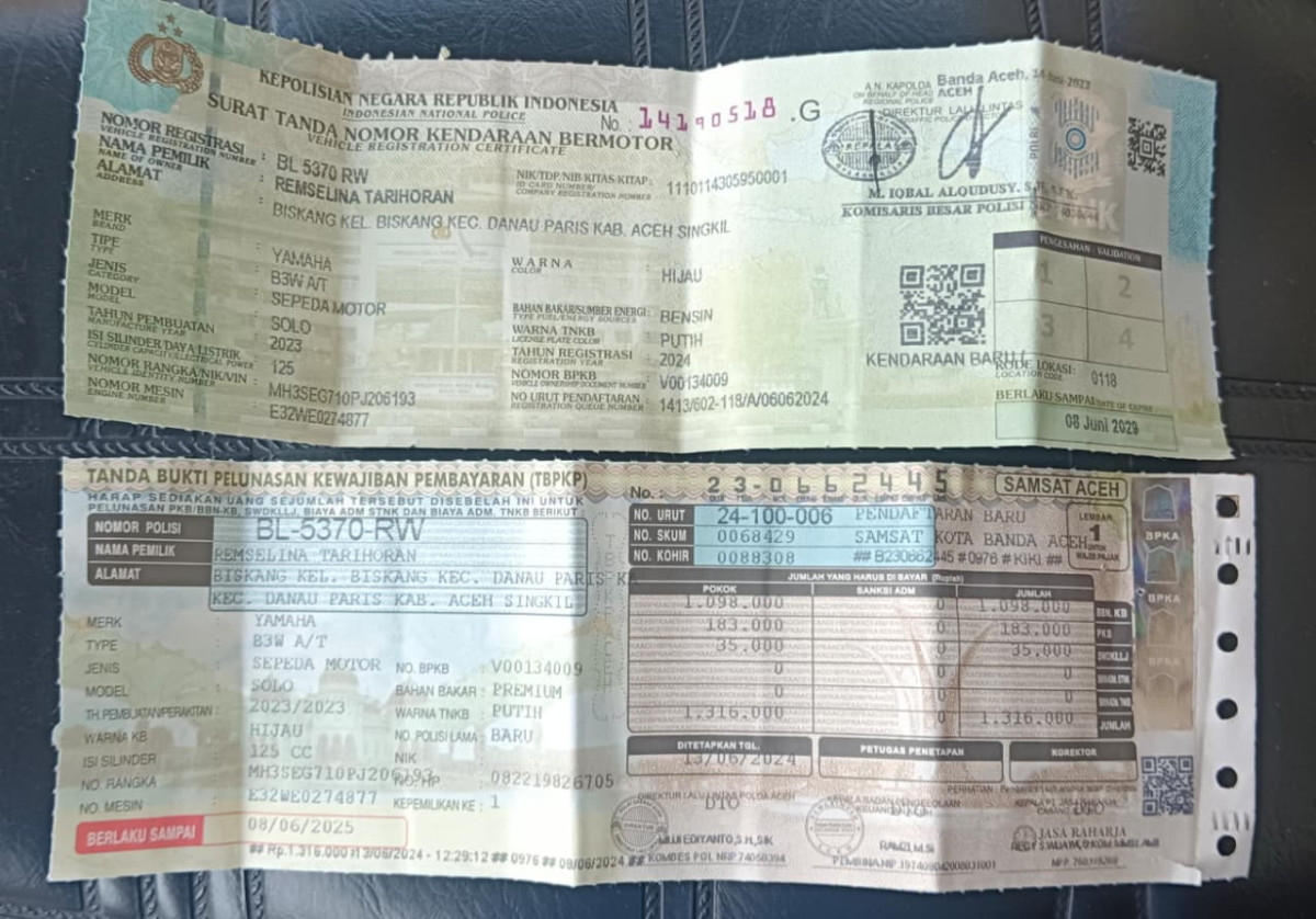 No. Polisi | : | BL 5370 RW |
