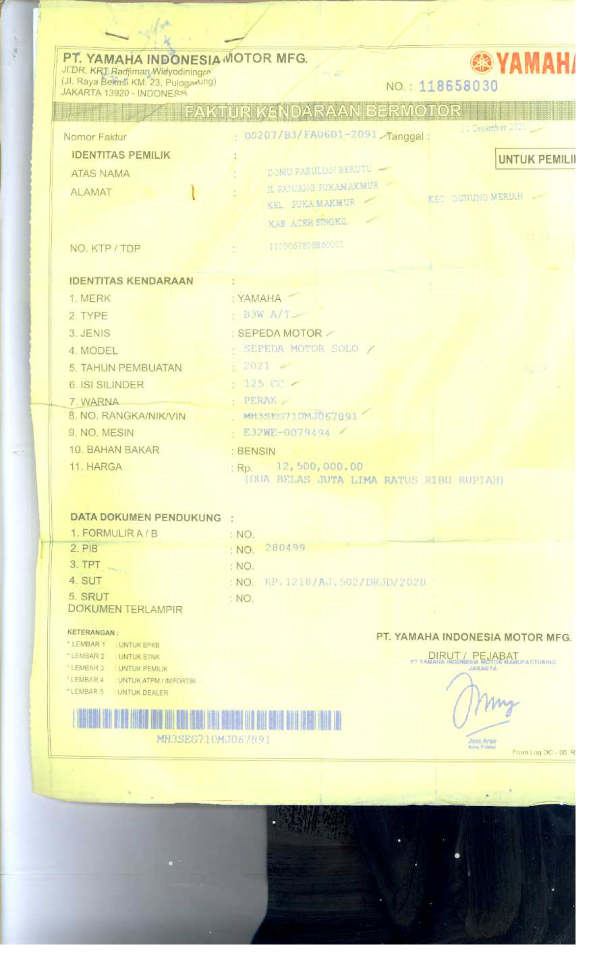 KM 13510, UNIT MATI, BODY BARET, BAN BELAKANG TIPIS, JOK KOYAK, SAYAP BARET. SPION TA// UNIT TIDAK DILAKUKAN PENGECEKAN OLEH TIM SMARTBID// SEBELUM MELAKUKAN PENAWARAN HARAP CEK KONDISI UNIT DAN DOKUMEN TERLEBIH DAHULU// WAJIB MENGHUBUNGI PIC DAN DATANG KE LOKASI UNTUK PENGECEKAN UNIT// UNIT DILELANG APA ADANYA PERMASALAHAN YANG TIMBUL DILUAR TANGGUNG JAWAB SMARTBID// JIKA INGIN MENGAMBIL UNIT HARAP UNTUK KONFIRMASI DAHULU KE SMARTBID // JIKA YANG MENGAMBIL BIDDER HARAP MEMBAWA KTP ASLI//